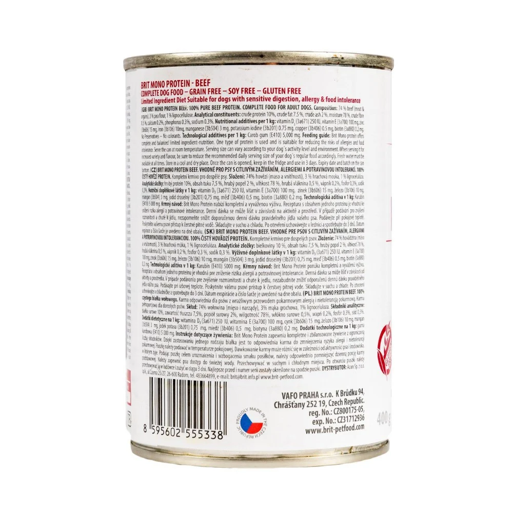 Консервований корм Brit Mono Protein Beef для дорослих собак із яловичиною
