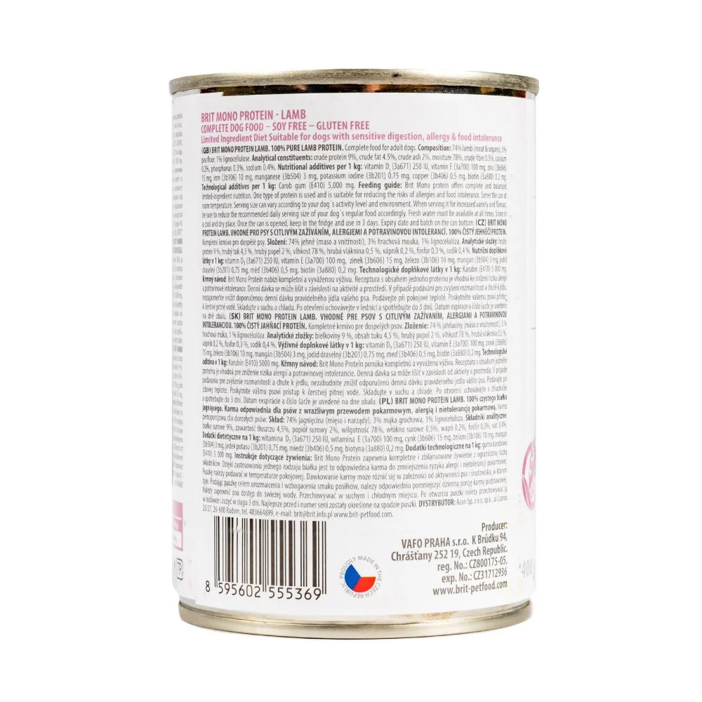 Консервований корм Brit Mono Protein Lamb для дорослих собак із ягнятиною